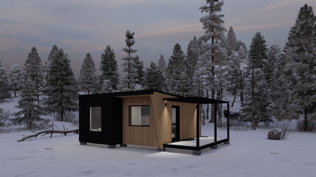 Casa Compact cu o compartimentare compusă dintr-un living cu bucătărie, dormitor, și baie ce acoperă nevoile principale, oferă confortul deplin, indiferent că vorbim despre locuit, o casă de vacanță sau o afacere de tip turism.